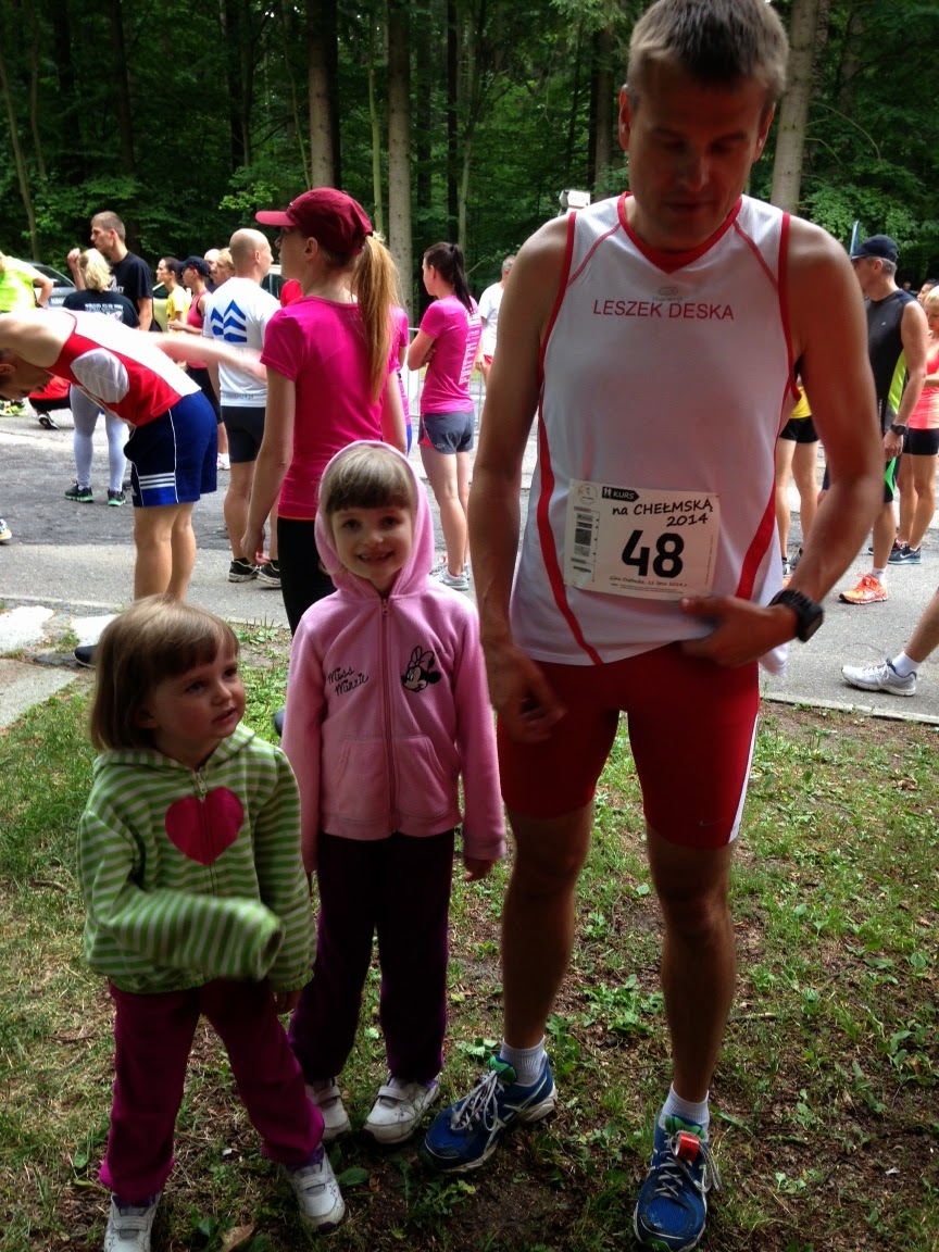 Na bieg przybyliśmy całą rodziną, w dodatku nie tylko najbliższą - w sumie 7 osób. W dodatku na miejscu spotkaliśmy znajomego który jak się okazało też biega :) Atmosfera rodzinna, no ale mimo obsuwy z racji startu honorowego na szczycie (o 12:00) w końcu nadszedł ten moment gdy wszyscy sobie spacerkiem poszli pod górkę a my musieliśmy wypluwać płuca na koszalińskich podbiegach.